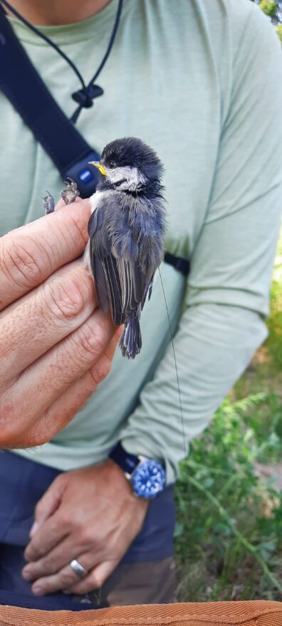 Out in the field, I learned how to observe mountain chickadees. When the nestlings hatched, we measured their weight and wing length. After watching Matt and Lorena a few times, I was excited to give it a shot myself. It was AWESOME! Holding a baby mountain chickadee in the palm of my hand, feeling its heart beat. I realized, in that moment, that this was something I wanted to do. I wanted to be able to give other students–as Matt did for me–the opportunity to pursue their passion and make an impact on the world. Both Matt and Lorena have been inspirational and challenged me to be my best.